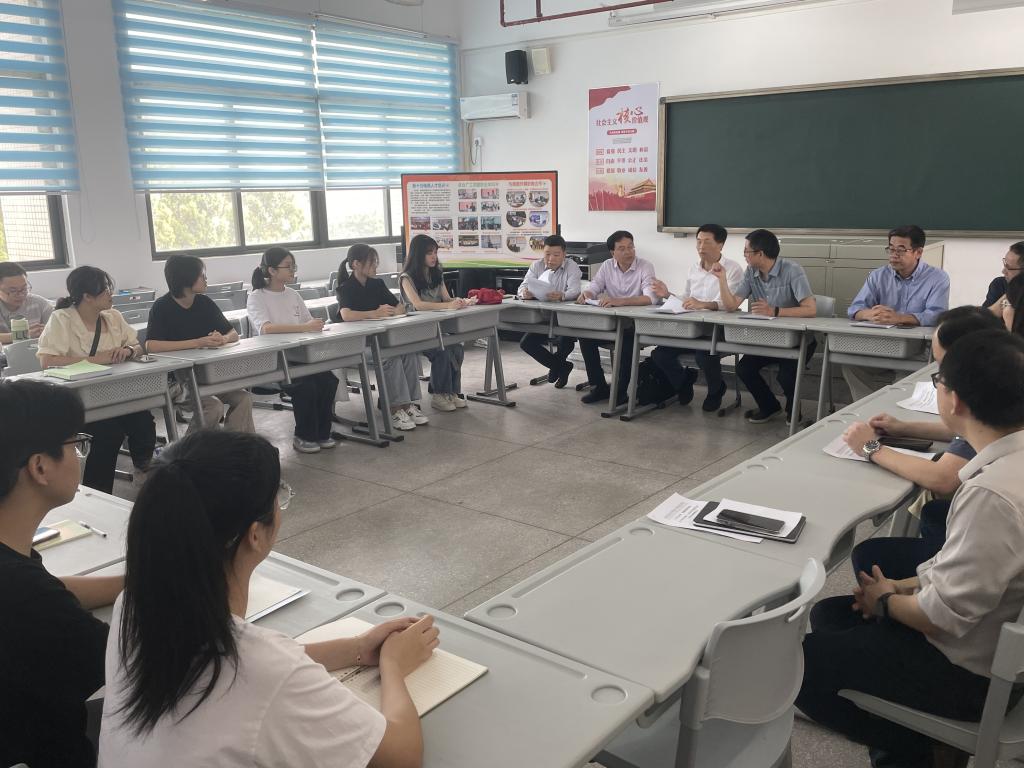 随后,莫赞一行移步至教研楼七楼深入走访电商实训基地,参观学院的实训教室、电商直播间等。在学生座谈会上,莫赞一行与学生代表进行亲切交流,了解学生学习、生活各方面情况,学生积极分享了在电商学院的成长与收获。莫赞一行对学院的实训条件给予了充分肯定,并表示愿意在人才培养、创新创业等方面与学院展开深入合作,特别是夯实学生在英语、数学等方面的学习,为学生顺利考上广东工业大学提供支持与帮助。
